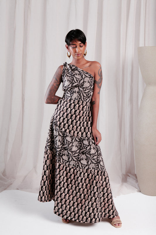 Sold outSITA One shoulder dress in Raven